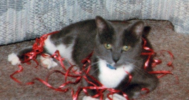 We got a cat when I was seven. At first I wanted to name him Billy after one of my favorite singers. A little while later I settled on Joel for his name. He was such a great cat. He was my best friend growing up. He took wonderful care of me. There are little hints of him in my cat Delila now. I keep a few framed pictures of Joel around the place. Delila listens to me play and sing just like Joel did when I was a kid. She even brings toys to his picture. He’s the reason, along with my middle name, that I use the name Gray Cat Music for my record label.