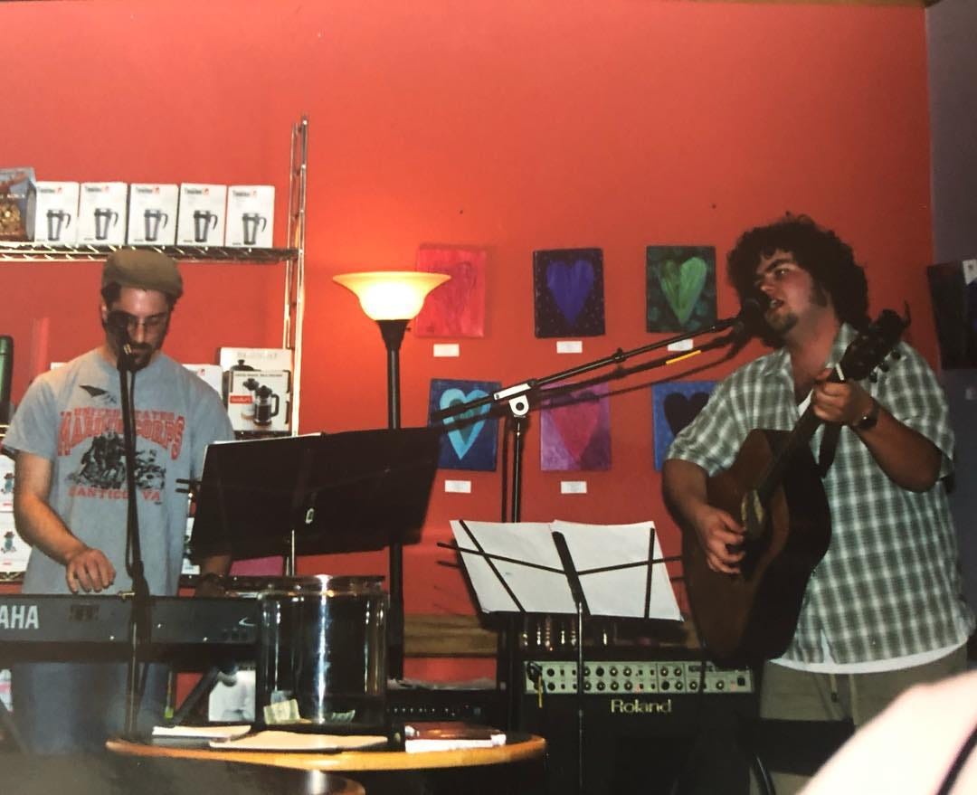 I was 17 or 18 when I first met Josh, somewhere around 2001 or 2002. He was playing jazz with Jim at Borders in Gurnee, Illinois. Josh on piano, Jim on drums. I still haven’t heard anything like that even though I played with them for a while on and off. Josh and I struck up a friendship pretty quickly. Aside from the free jazz of Lot 49, we also played several duo shows over the years. We both would sing our own songs as well as a handful of covers we had cooked up. Some of my happiest memories are of working on songs with Josh. We both love Bob Dylan and we tackled several. Certain songs would become mainstays in our setlist such as “It’s All Over Now, Baby Blue.” There was never a complete Josh & Kyle show without Jokerman.